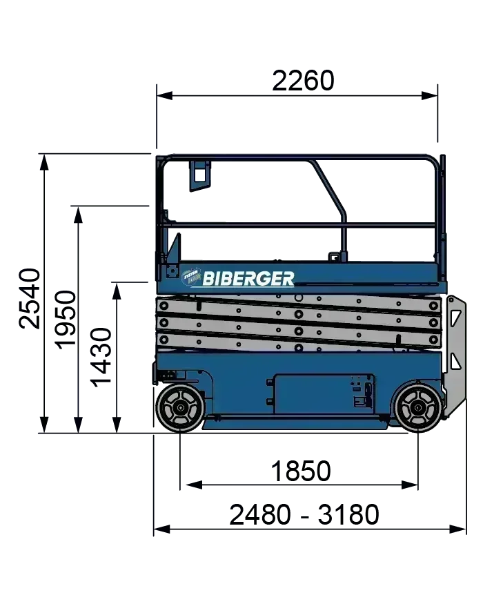 Mit kompakten Transportmaßen von 2,48 x 1,19 Metern und einer Durchfahrtshöhe von 2,45 Metern ist die SB 140-E einfach zu bewegen und passt auch durch schmale Zugänge.