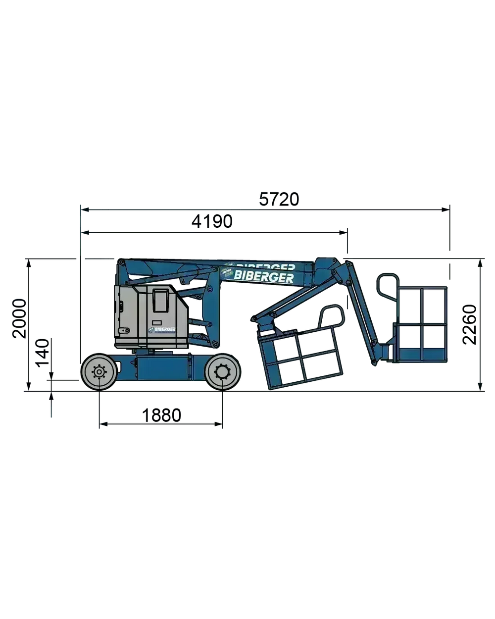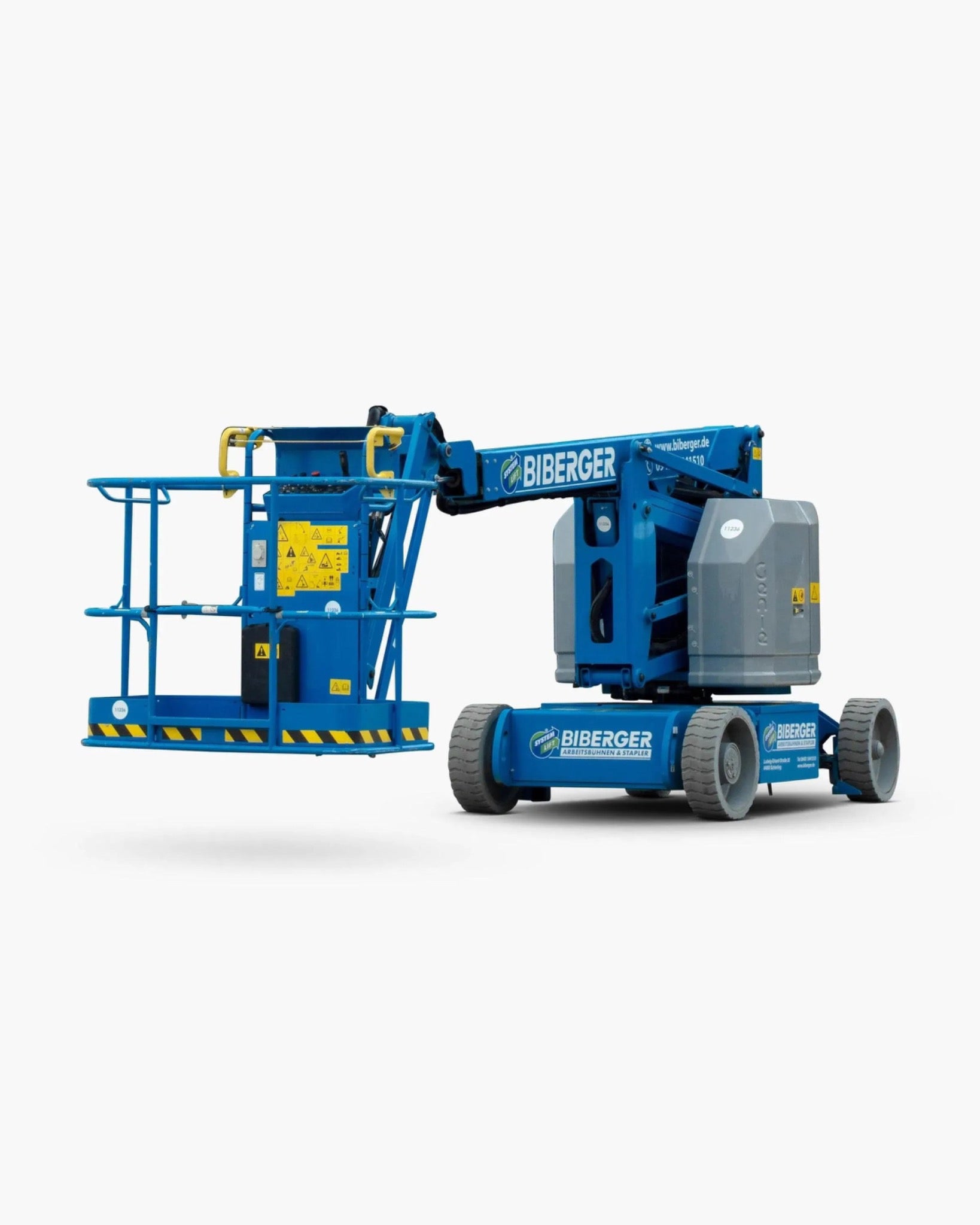 Die Bühne wird von einem Elektromotor angetrieben und verfügt über einen 4x2-Antrieb, was sie ideal für Innen- und Außeneinsätze macht. Dank der weißen, abriebsfreien Bereifung hinterlässt sie keine Spuren auf empfindlichen Böden. Die Transportmaße betragen 4,19 x 1,47 Meter bei einer Durchfahrhöhe von 2,00 Metern und einem Eigengewicht von 5.171 kg. Mit einer Steigfähigkeit von 30 %bewältigt die GTB 125-E auch anspruchsvolle Gelände problemlos.
